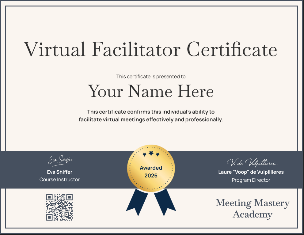 Tired of dull, disengaged online sessions? The Virtual Facilitator Certificate® helps you turn every meeting into a high-impact experience.